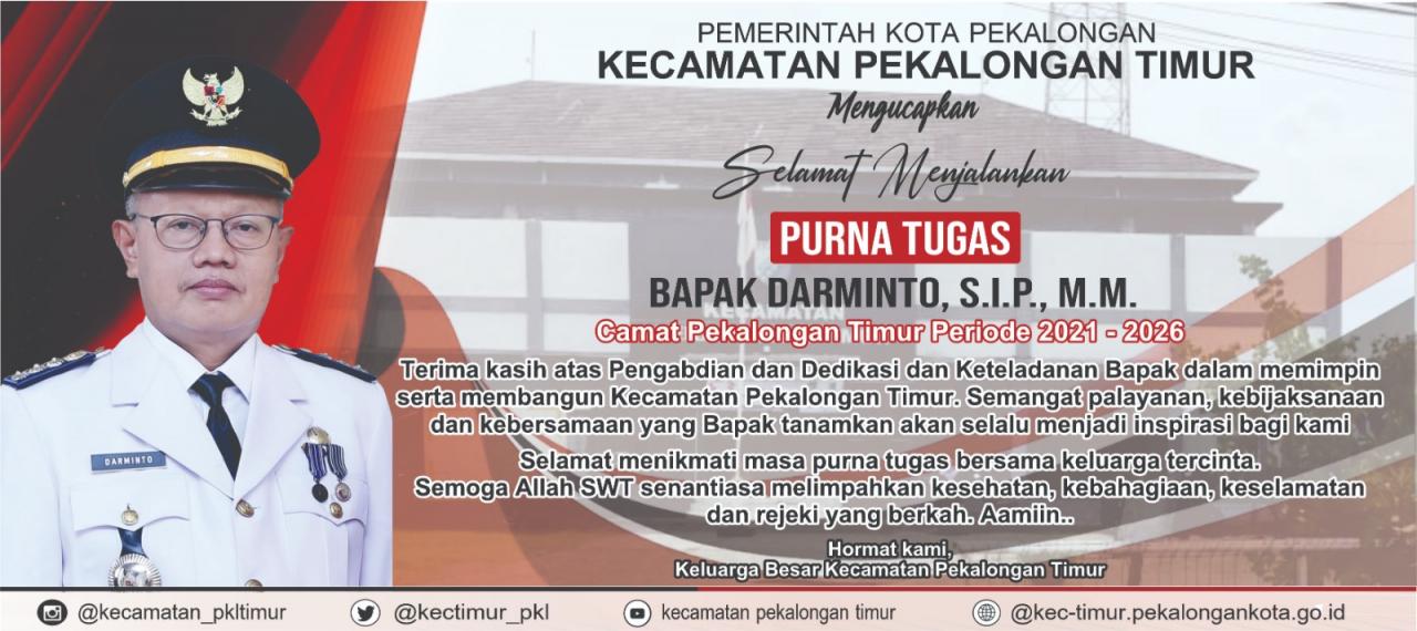 UMUM Selamat Purna Tugas Bapak Camat Pekalongan Timur 2021-2026 DARMINTO, S.IP,MM 1 Februari 2026 [11:50:03]