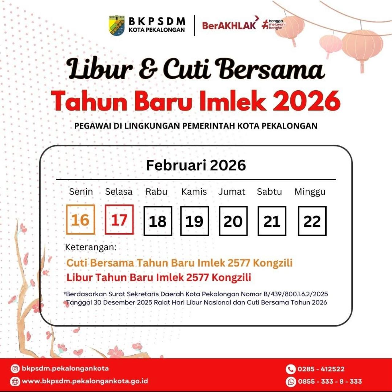 PEMBERITAHUAN LIBUR DAN CUTI BERSAMA TAHUN BARU IMLEK TAHUN 2026