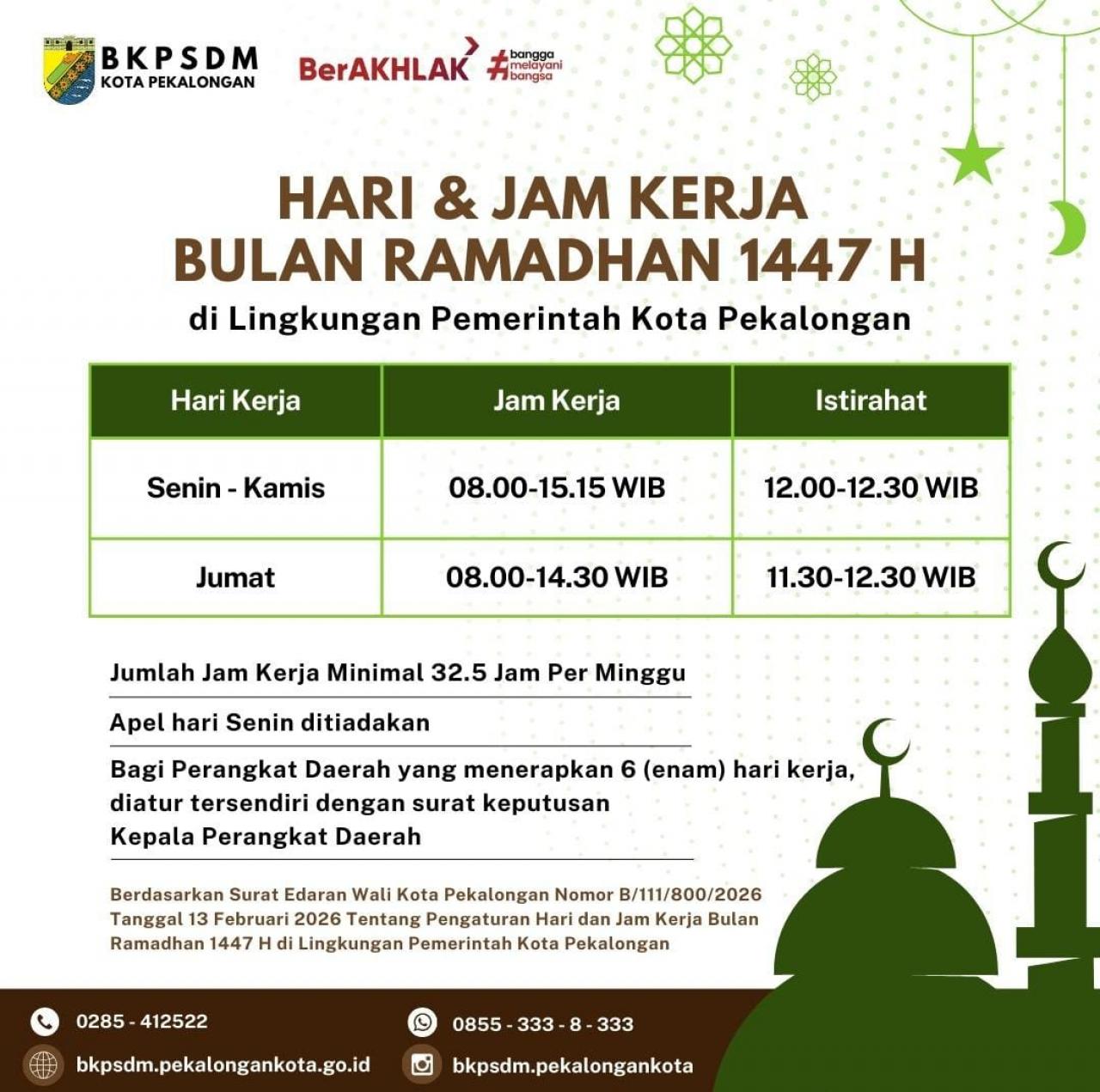 JADWAL JAM KERJA SELAMA BULAN RAMADHAN 1447 H